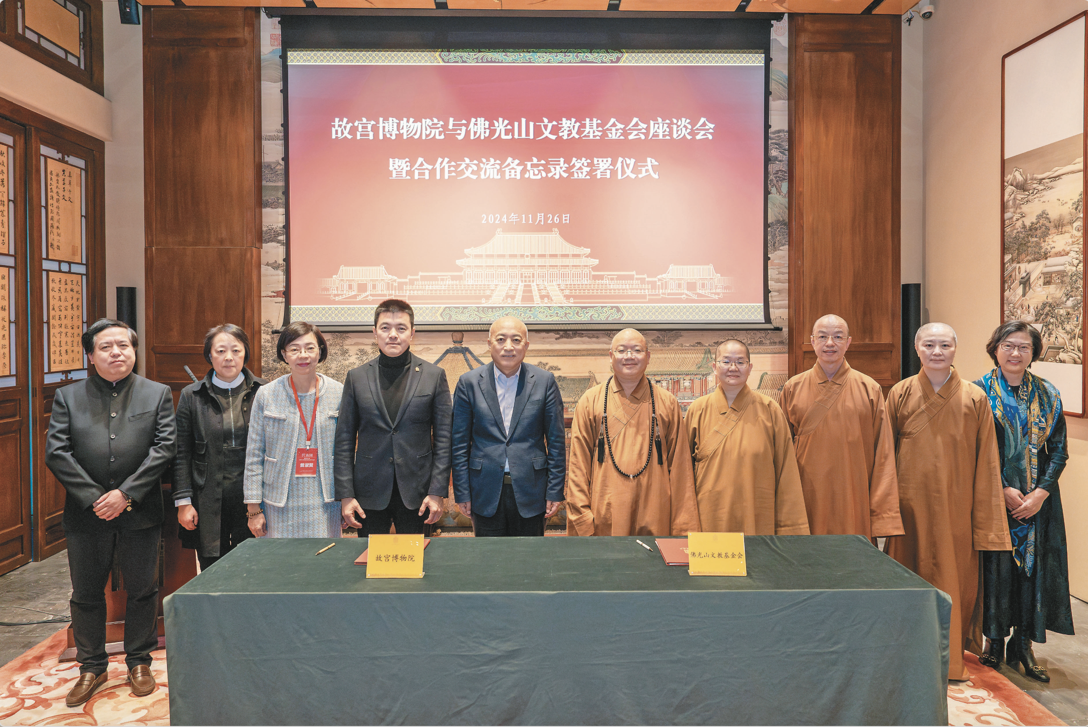 【人间社记者心立北京报导】北京故宫博物院与佛光山文教基金会12月26日于北京故宫签署合作交流备忘录,由佛光山住持心保和尚与故宫博物院院长王旭东担任见证人,佛光山文教基金会执行长如常法师与北京故宫常务副院长娄玮代表签署。双方并于现场进行座谈,就未来可进行的项目提出看法。